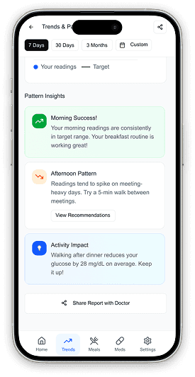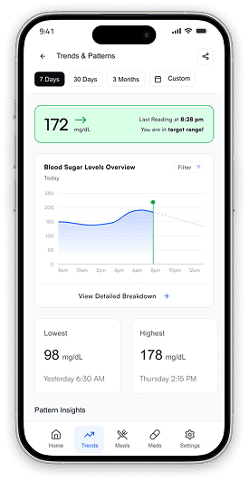 "Glucose tracking, meal logging, medication reminders, doctor reports all in one app. I can finally delete MySugr, Healthify Me, and my medication reminder app."