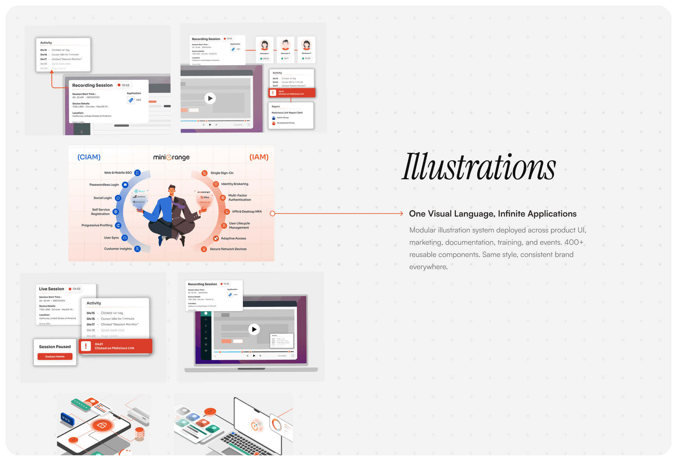 Modular illustration system across sales, docs, and email — deployed simultaneously to every team.